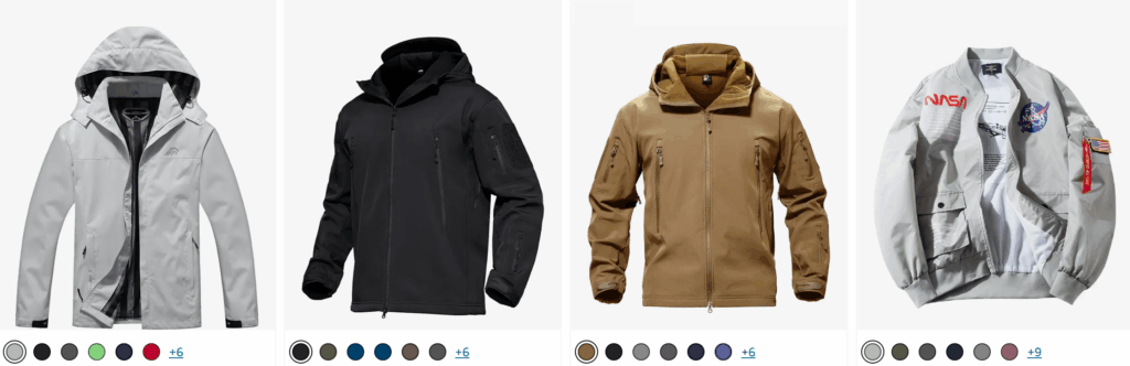 Razões para a popularidade: A necessidade sazonal, as tendências de atividades ao ar livre e as tendências da moda sustentam uma demanda constante por casacos e jaquetas. Os consumidores priorizam a funcionalidade resistente às intempéries (à prova de vento, à prova d’água) sem abrir mão do estilo para o dia a dia. Jaquetas funcionais para atividades ao ar livre e jaquetas-camisa (shackets) estão experimentando um crescimento particularmente forte!